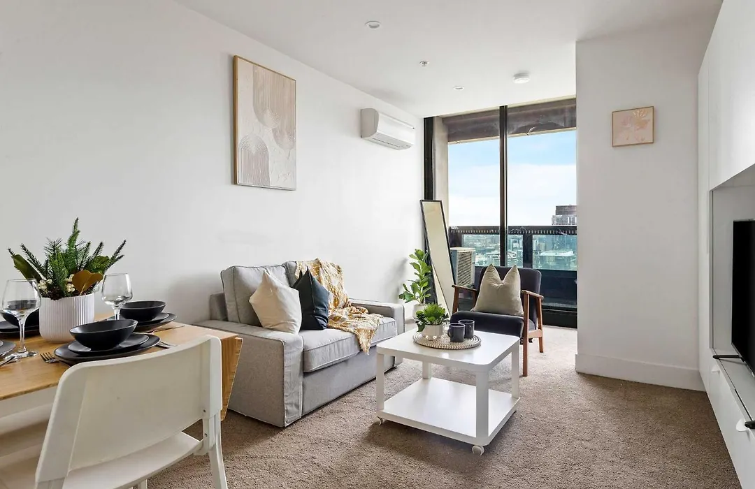 55m²のA Modern & Cozy 2Br Apartment With City Views メルボルンは、聖フランシス・カトリック教会から徒歩で5分で、エッセンドン空港から15キロメートルの場所にあります。 ビクトリア州立図書館少し離れたに位置するこの寝室1室のアパートで、顧客はプールを利用できます。